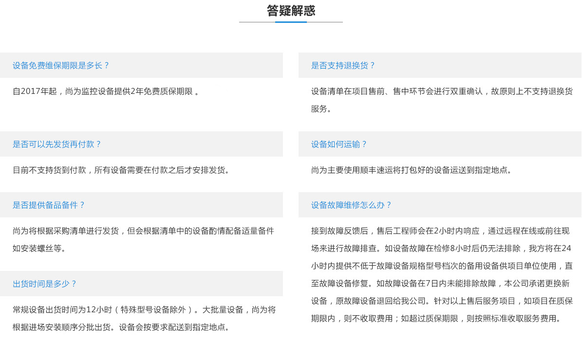 設(shè)備清單在項目售前、售中環(huán)節(jié)會進行雙重確認,故原則上不支持退換貨服務(wù)。